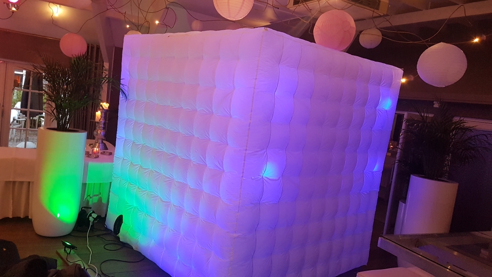 Onze opblaasbare Photobooth met instelbare ledverlichting is dé hit op elke bruiloft, personeelsfeest, verjaardag of evenement!