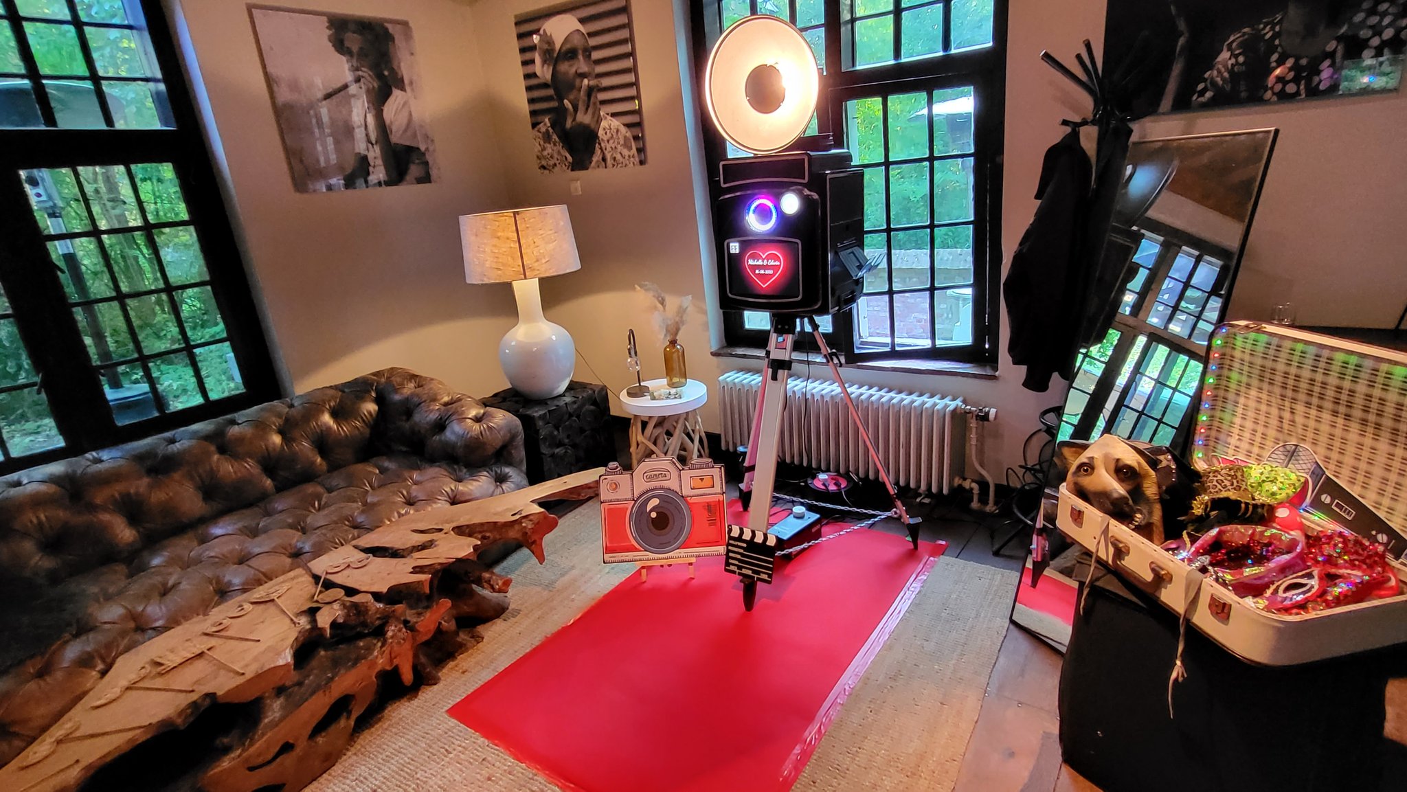 De Photobooth is ook perfect op onze rode loper te gebruiken, zonder opblaas Booth.