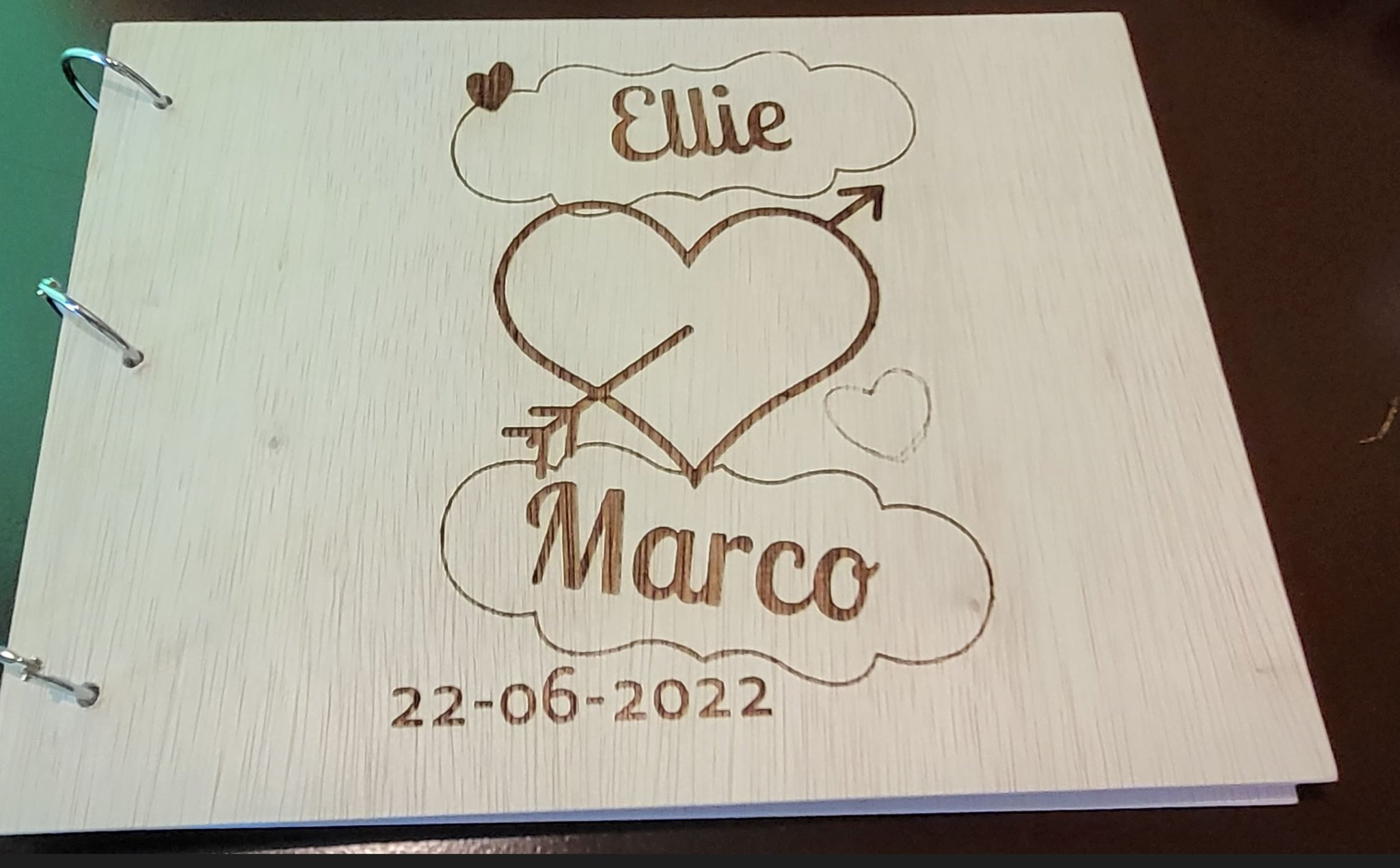 Heeft u zelf geen gastenboek? Wij kunnen deze verzorgen. Een gastenboek op A4 formaat, (liggend of staand) met houten kaft en premium bladen. De houten kaft wordt d.m.v. lasergravure voorzien van uw persoonlijke tekst/logo/datum/naam.